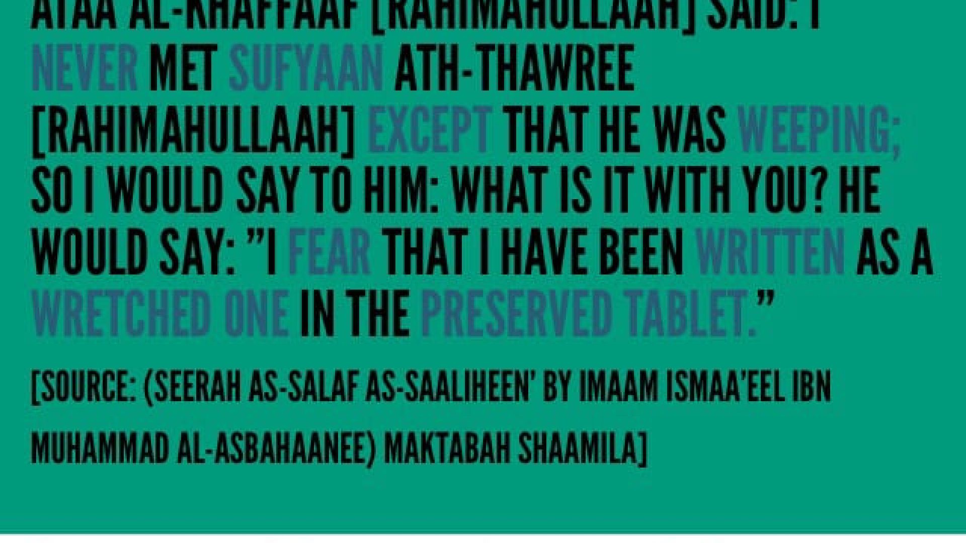 ”In reality, a person should have secluded sittings in which he remembers his sins and then seeks Allaah’s Forgiveness.” [Tabaqaat Ibn Sad: 6/80]