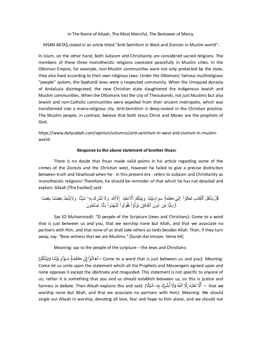 So due to his persistent lying and transgression, we decided to respond and clarify that his statements were lies, all in the hope that he would recant, make tawbah openly (as he was sending these emails out to whoever he wished), and return to the sound positions of the scholars.