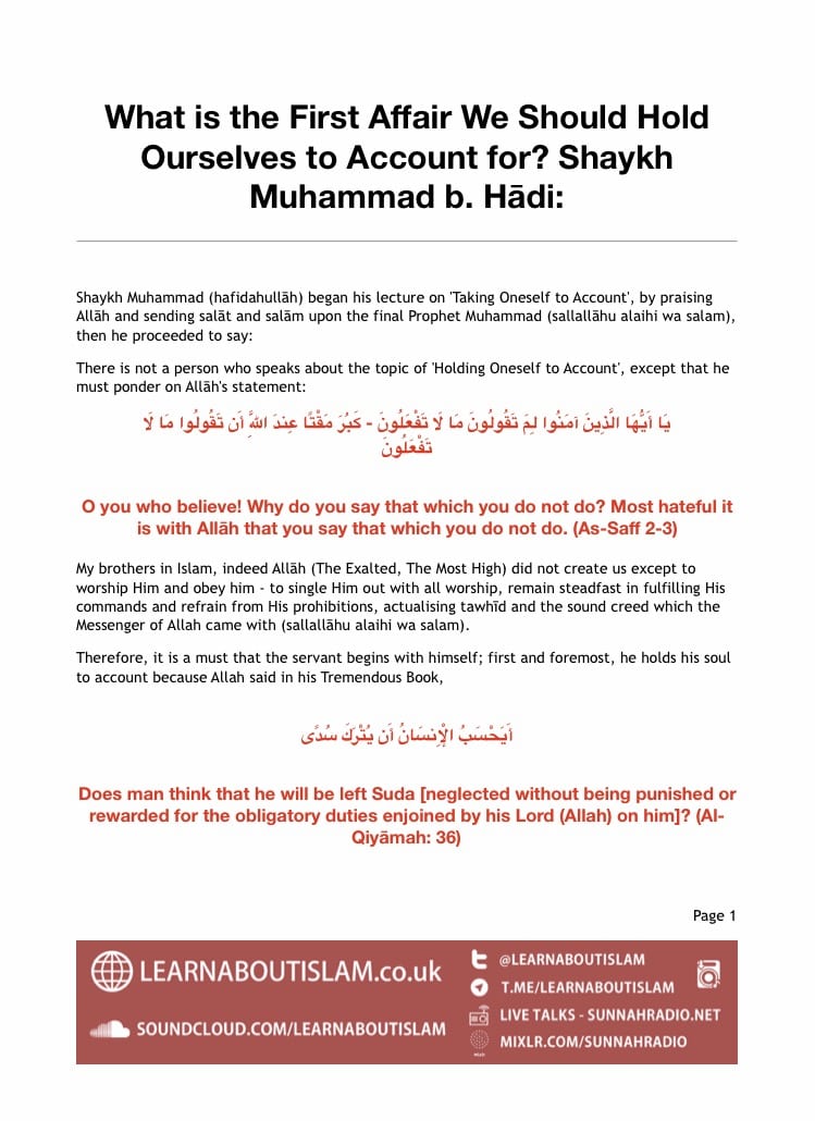 [1]Quotes from Booklet Titled: ‘Tawjeehaat Muhimmah Li-Shabaabil Ummah’ by Shaikh Saaleh Al-Fawzaan