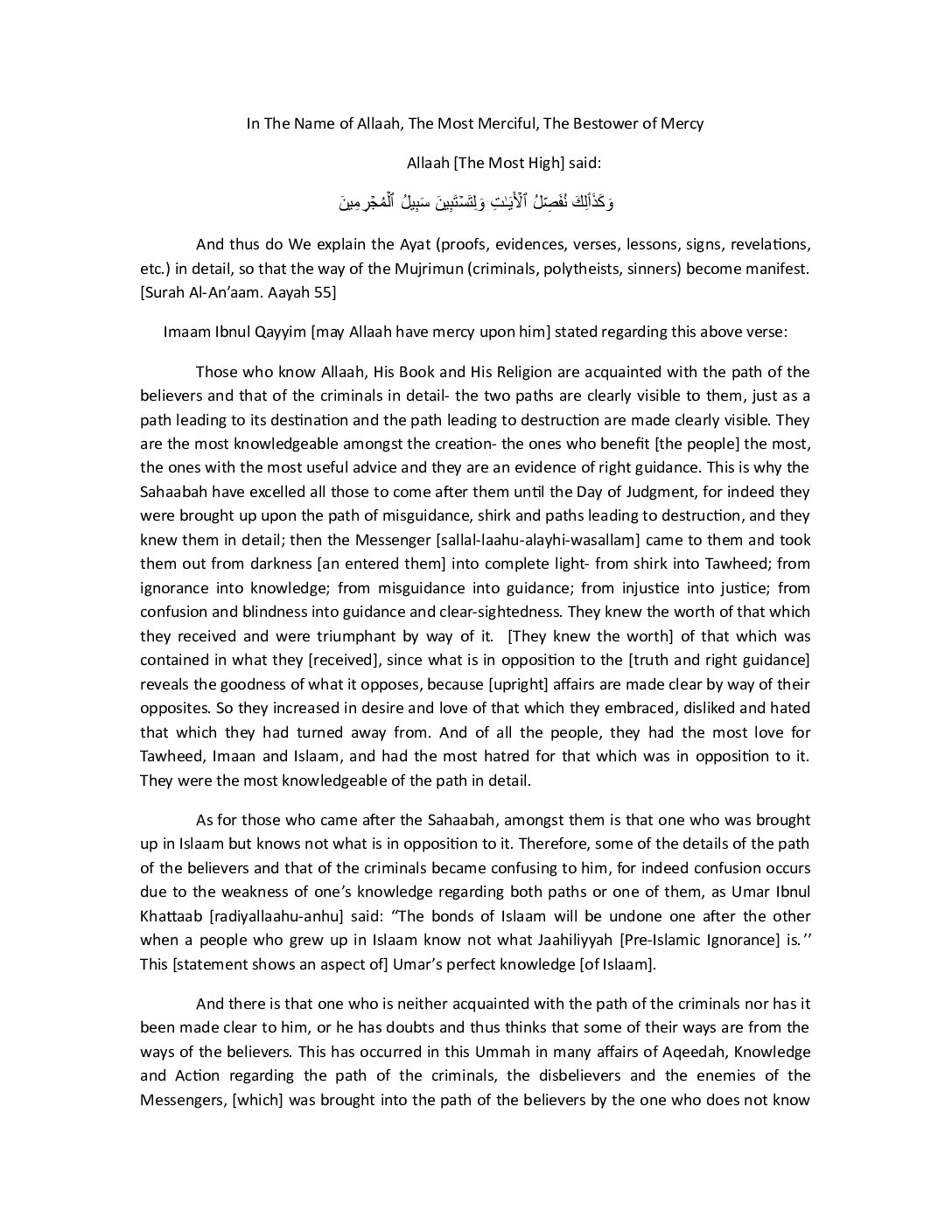 In The Name of Allaah, The Most Merciful, The Bestower of Mercy