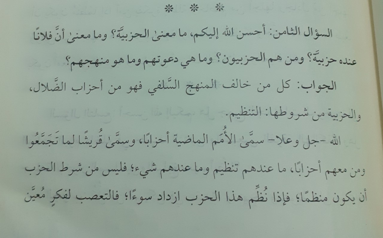 Likewise, we bring the Books of the Salaf to these people; we bring the Qur’aan and the Sunnah to them; we bring Saheeh Bukhaari, Saheeh Muslim, Sunan Abu Dawood, Sunan Tirmidhee, Sunan Nasaa’ee, the Books of Imaam Ahmad and other than him from the Salaf, and thus we will find out those who are upon the path of the Salaf and those in opposition to them! Just as Allaah (The Most High) challenged the Jews to present the Torah, so they presented it and it opposed what they were upon; likewise we challenge the people of hizbiyyah to present the Books of the Salaf in order to expose the innovators amongst us and them!