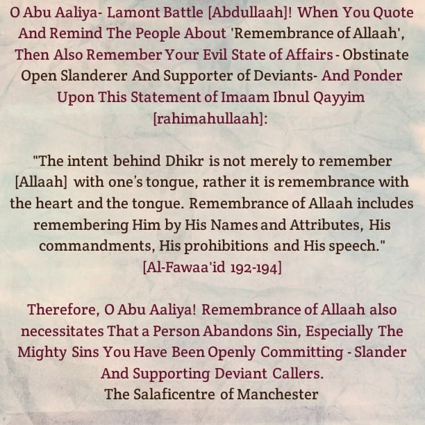 So we say to Abu Ibraheem Husnayn: Do you promote the staunch supporters of Mubtadi’ah and consider them to be upon the balanced path?! How can the staunch followers of Mubtadi’ah be considered as such, rather the people upon the balanced path are those who abandon the obstinate figureheads of bidah and their staunch followers. They reject the shubuhaat of the figureheads of bidah and their staunch followers at Masjid As-Sunnah (Manchester), Masjid Al-Ghurabaa (Luton), Masjid Ibn Taymiyyah (Brixton), Masjid Al-Furqan (Manchester) and other people of hizbiyyah.