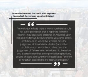 In The Name of Allaah, The Most Merciful, The Bestower of Mercy. Imaam As-Sadi [may Allaah have mercy upon him] stated in Ar-Risaalah Al-Lateefah: “The Asl (fundamental principle or initial ruling) regarding commands in the Book (i.e. the Qur’aan) and the Sunnah is that they (necessitate) Wujoob (i.e. obligation), unless if an evidence to (show) … Continue reading A Precise Affair Regarding The Statement “Prohibitions Related to Etiquettes Takes The Ruling of Karaahah”