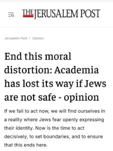 In the above article, one of the things Sivan Koren mentioned was that: “Academia, which should symbolize openness and respectful dialogue, has in many cases transformed into an arena where hate is legitimized. The disturbing case at Columbia University serves as a stark warning. A professor who praised Hamas’s brutal attack – which led to the deaths of over 1,200 Israelis – was allowed to teach a course on Zionism. How can someone like this be entrusted with teaching the history of the Jewish people? This decision is not only a moral affront but also evidence of a profound ethical distortion and irresponsibility on the part of the institution’s leadership”]. [End of quote]