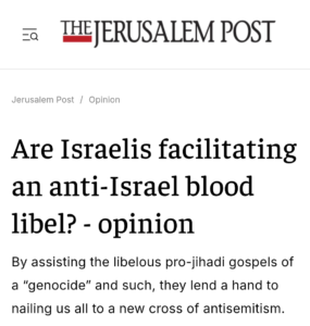 Yisrael said: “Are Israelis facilitating an anti-Israel blood libel? – opinion [end of quote]
