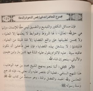 The second matter: Indeed, we are blessed with the methodology of Shaikh Muhammad ibn ‘Abd al-Wahhab – this Salafi methodology. Therefore, it is incumbent upon us to limit ourselves to it and give it close attention, for indeed, it – all praise, grace and blessings belong to Allah – gathers virtues derived from Allah’s Book and the Sunnah of His Messenger.