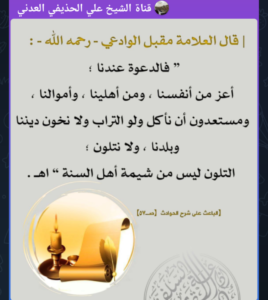 The Dawah is more precious to us than our own ourselves, (or lives) and our families. We are prepared to eat sand rather than betray our religion and our country; wa lā natalawwan – we do not waiver stances and principles according to personal interests and desires; at-talawun is not from Ahlus Sunnah’s moral character. [(1)]