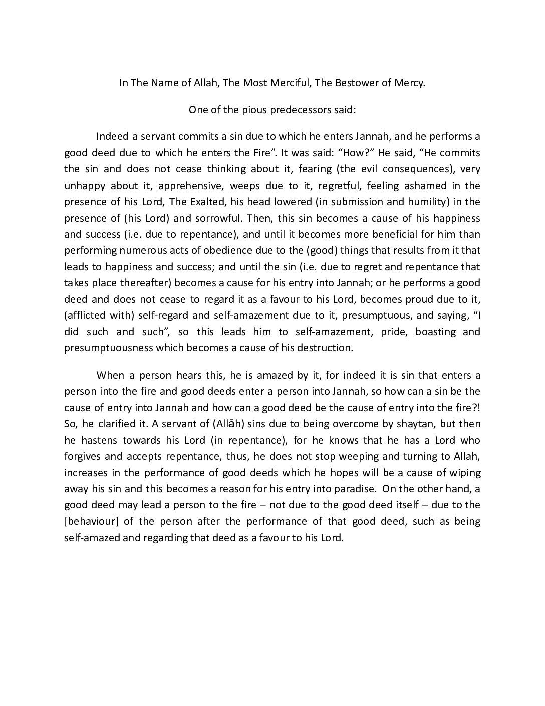 In The Name of Allaah, The Most Merciful The Bestower of Mercy