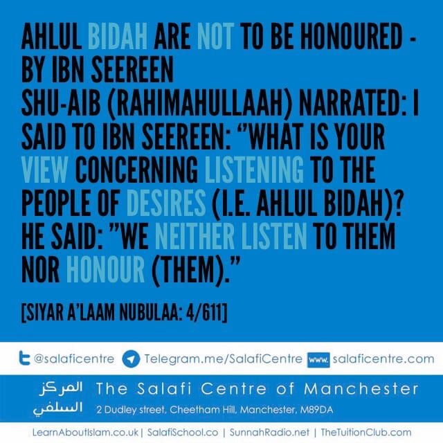 Imam Al-Barbahaaree [may Allah have mercy upon him] said: “Know that leaving the correct path occurs in two ways. Firstly, a man strays from the correct path intending nothing but good, so his error is not to be followed since it leads to destruction. Secondly, a man who deliberately opposes the truth and acts contrary to the Pious ones who came before him, is astray, leading others astray, a rebellious devil within the Ummah. It is a duty upon those who know of him to warn the people against him and to explain his condition to them so that no one falls into his innovation and is destroyed”.