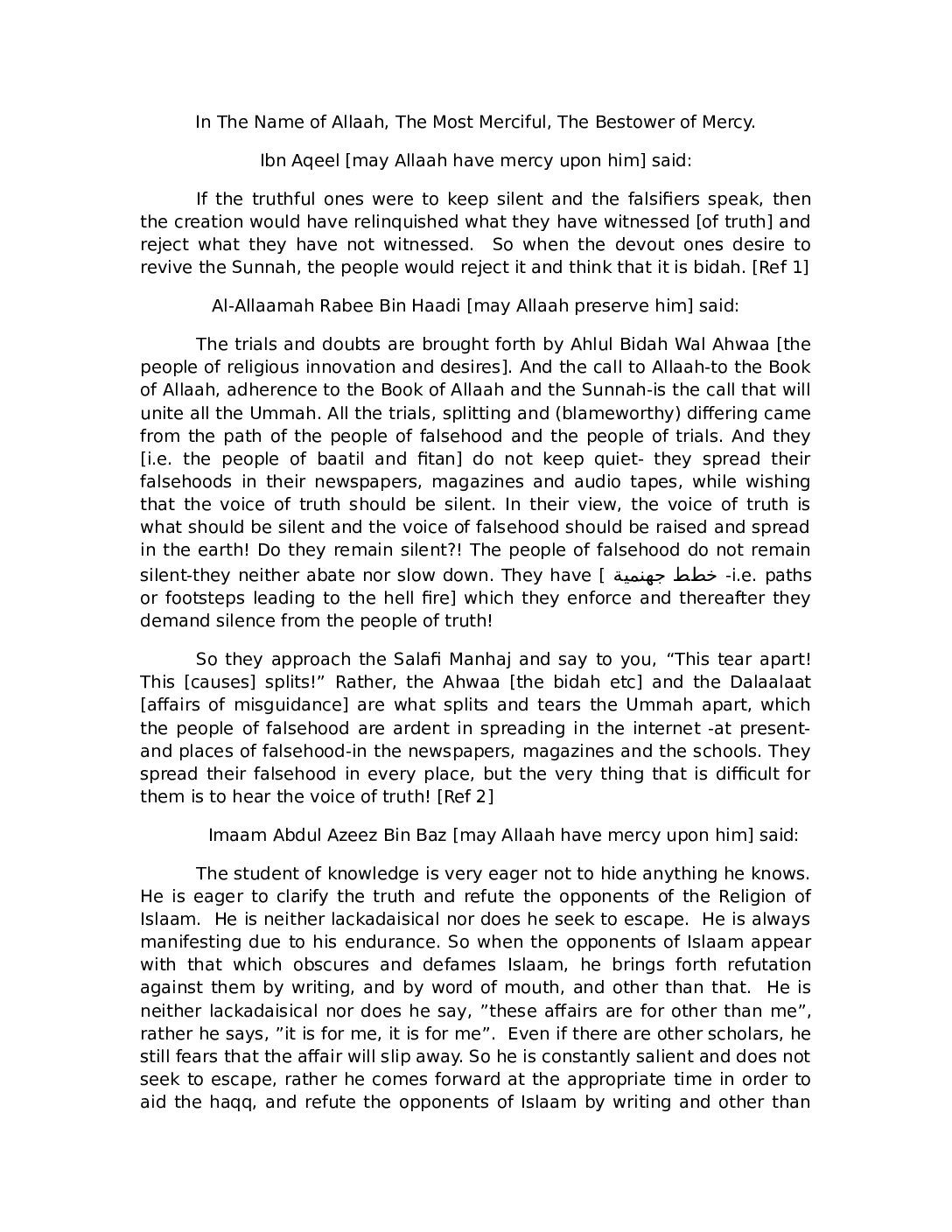 Written by Abdullah Jallow on . Posted in Brotherhood, Da'wah - Calling To Islam, Deviated Groups, Sects and Parties, Family & Women, Innovations In Islam (Bidah), Khawaarij, Methodology - 'Manhaj', Scholars of Islam, Seeking Knowledge, The Salaf - Pious Predecessors.