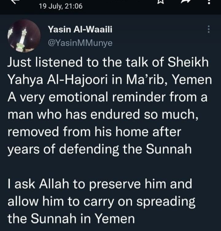 Shaikh Ali bin Yahya bin Ali Al ‘Amiree Al Hadadi (may Allaah preserve him) stated: