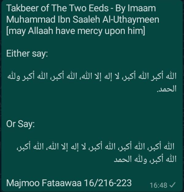 Few Reminders Regarding The Two Eeds – [The Takbeer and Other Issues]