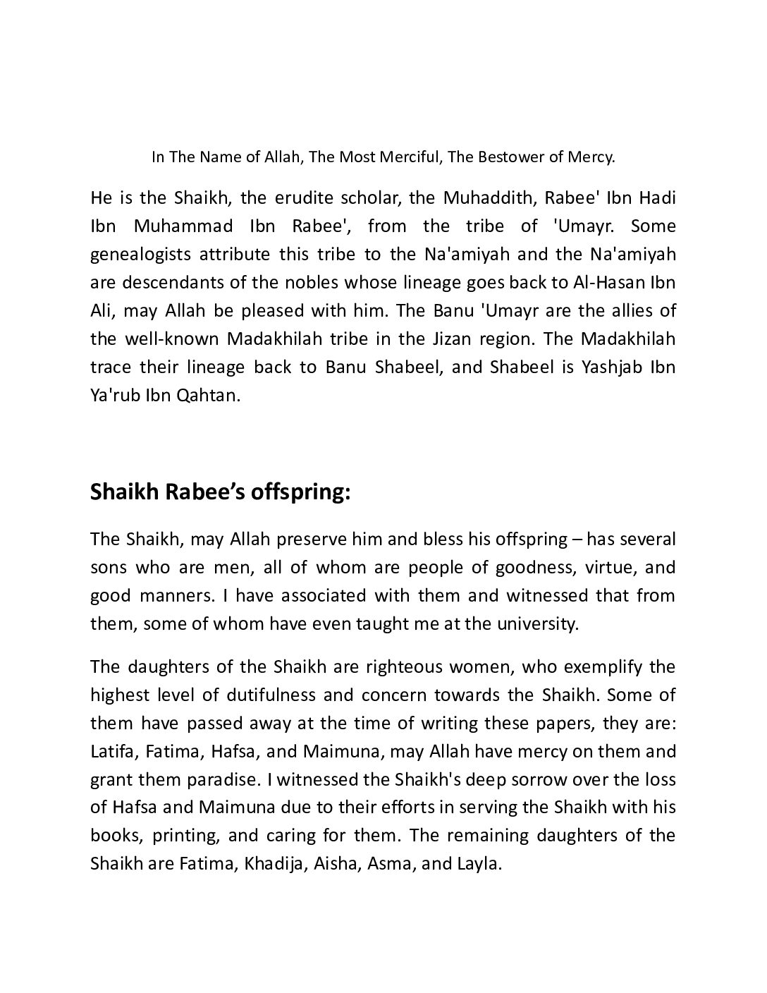 Rabee’ Bin Haadee ‘Umayr al-Madkhalee