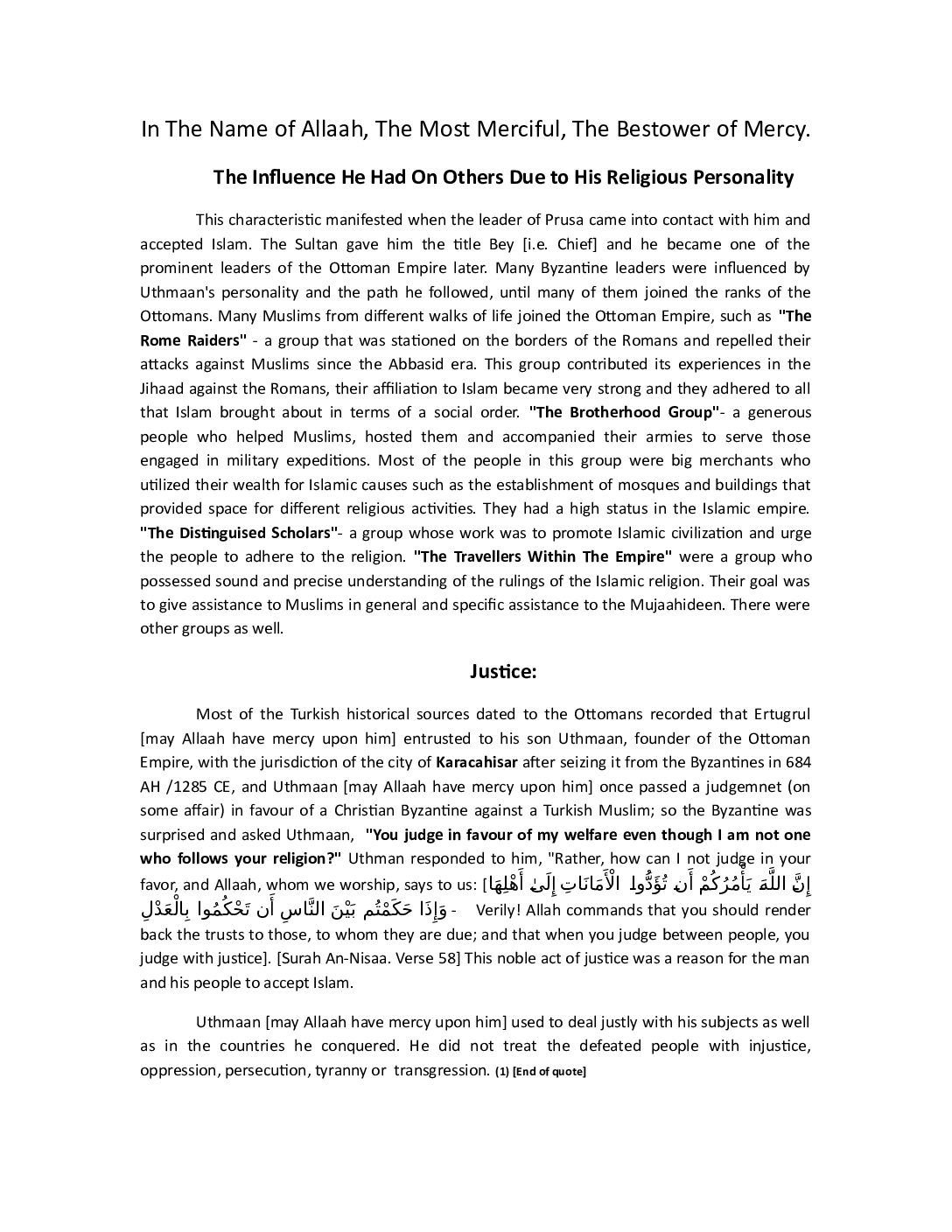And he (sallal-laahu-alayhi-sallam) sent one person to Caesar, King of Rome to call him to Islaam and establish the proofs against him. The people used to enter Islaam through the message of this one trustworthy-truthful person sent by the Prophet (sallal-laahu-alayhi-wasallam). And if they rejected Islaam and refused to follow the Messenger of Allaah (sallal-laahu-alayhi-wasallam) based on the information transmitted by this one trustworthy-truthful person, he (sallal-laahu-alayhi-wasallam) prepared an army against them. The Messenger (sallal-laahu-alayhi-wasallam) prepared an army for the battle of Tabuk against the Romans based on the fact that they rejected the call to Islaam which was communicated to them by one person.