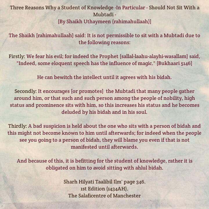 So whoever desires to cut the khalaf (successors) of the Ummah from their Salaf (predecessors) then he is a person causing corruption in the lands, it is an obligation to reject his statement and to refute his speech, and to warn from him.